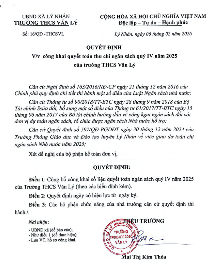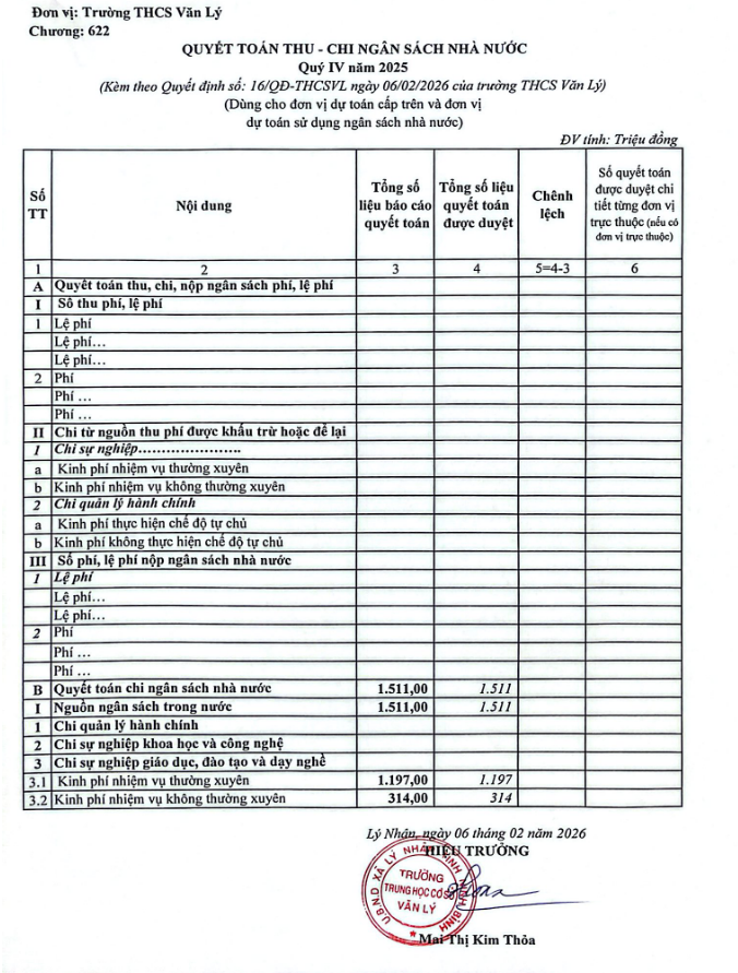 Công khai quyết toán thu chi ngân sách quý IV năm 2025