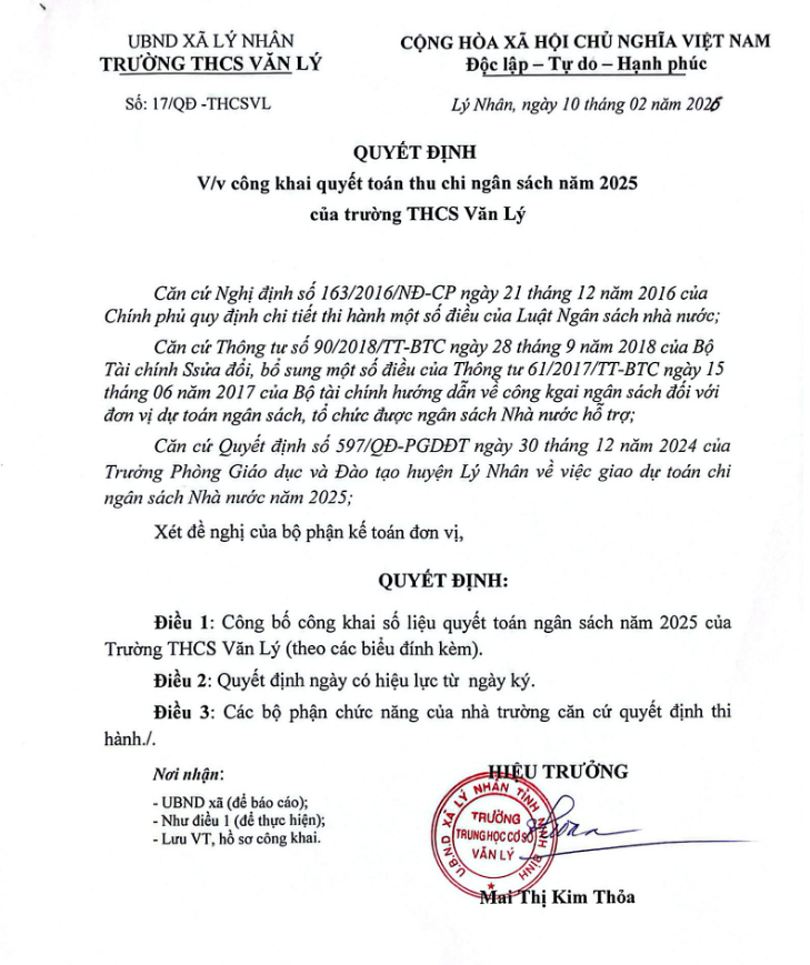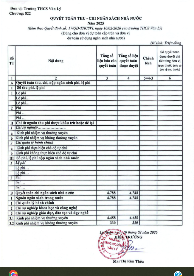 3. Công khai quyết toán thu chi ngân sách năm 2025