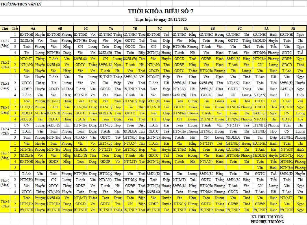 Thời khóa biểu số 7(thực hiện từ 29/12/2025)