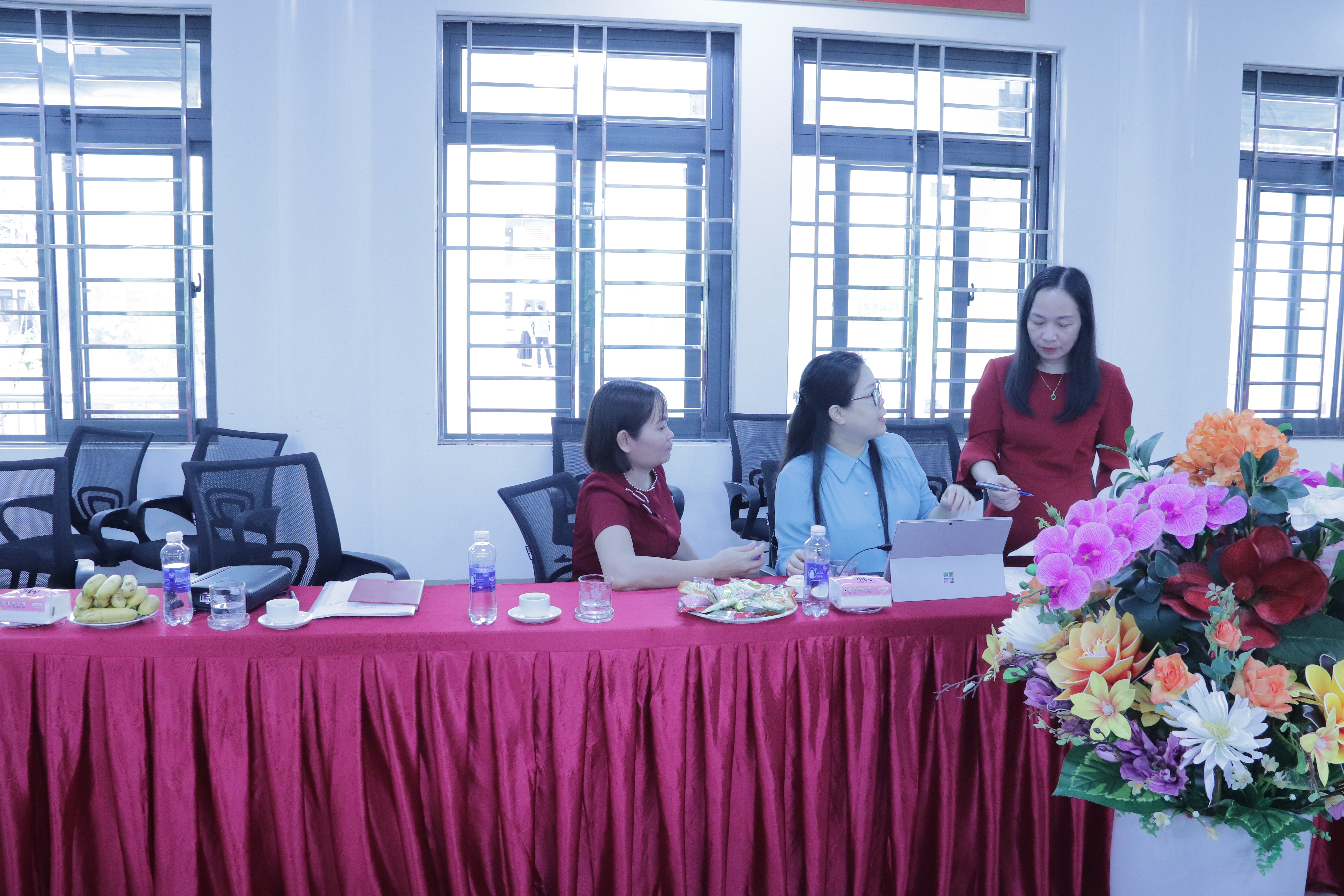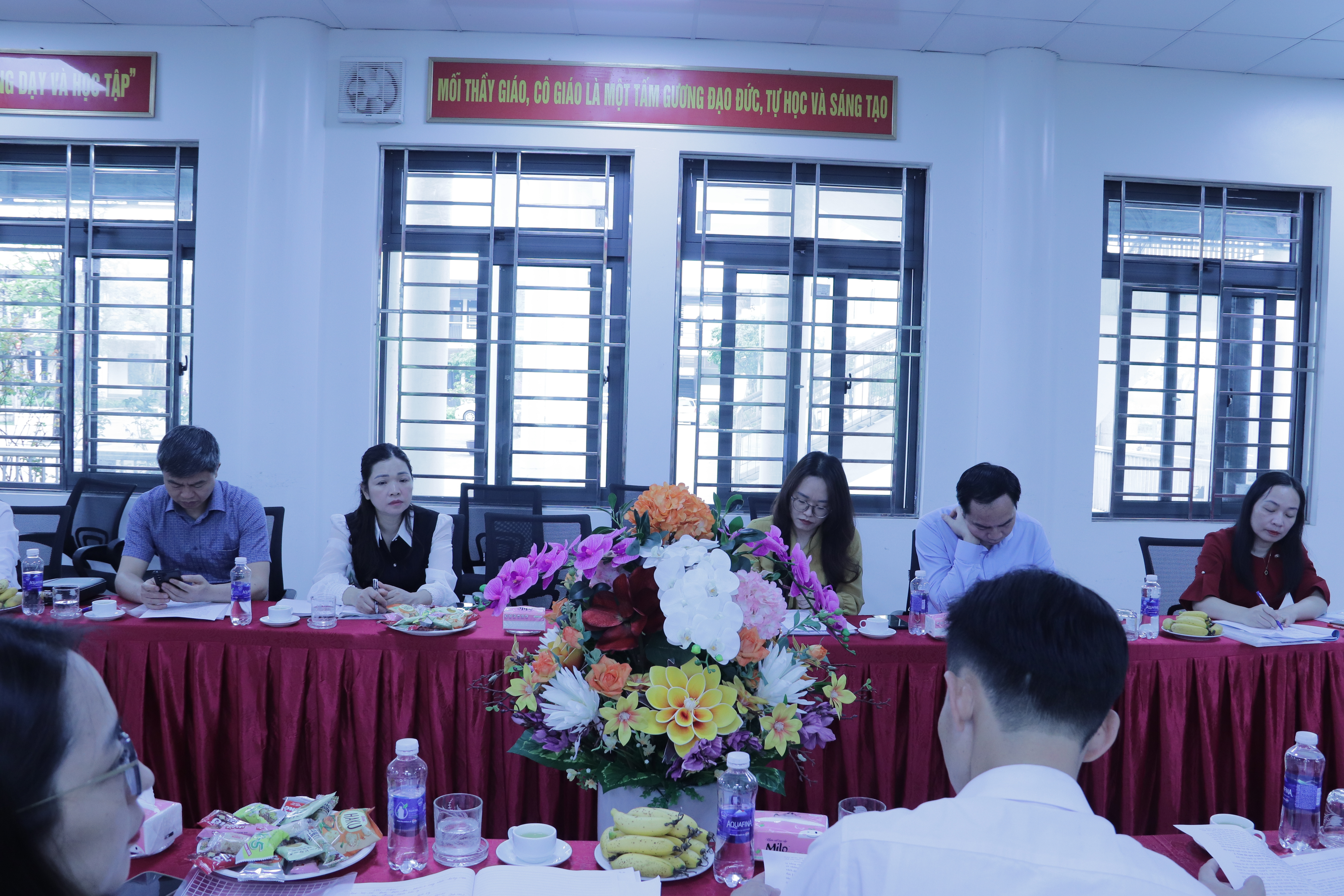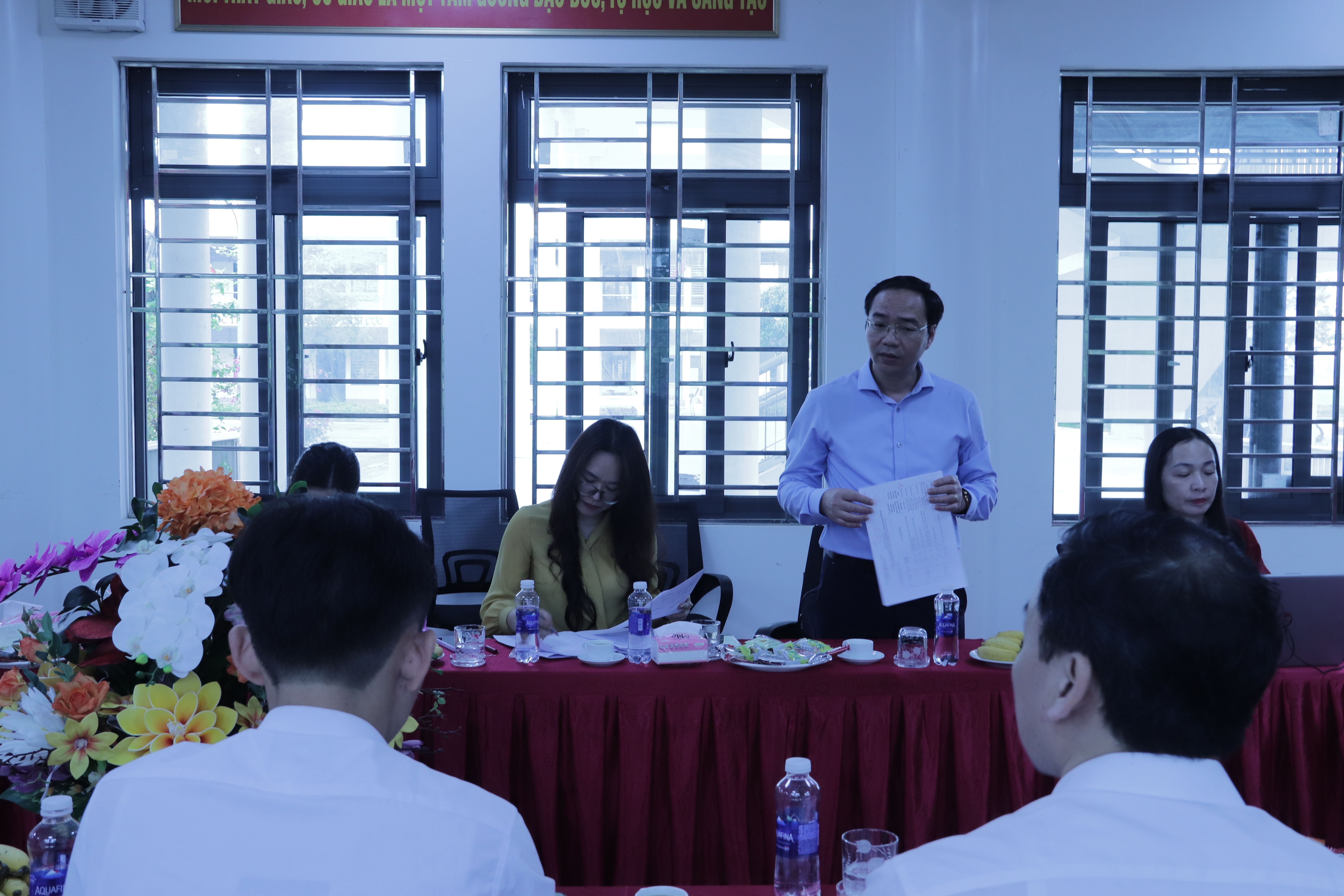 Dưới sự chỉ đạo của đồng chí Đinh Văn Khâm, buổi làm việc diễn ra trong không khí nghiêm túc, khoa học và với tinh thần trách nhiệm. Đoàn đánh giá đã tiến hành khảo sát toàn diện các điều kiện bảo đảm chất lượng giáo dục của nhà trường, từ cơ sở vật chất, trang thiết bị dạy học, hệ thống hồ sơ minh chứng đến việc dự giờ, quan sát các hoạt động giáo dục và trao đổi trực tiếp với cán bộ quản lý, giáo viên, học sinh.