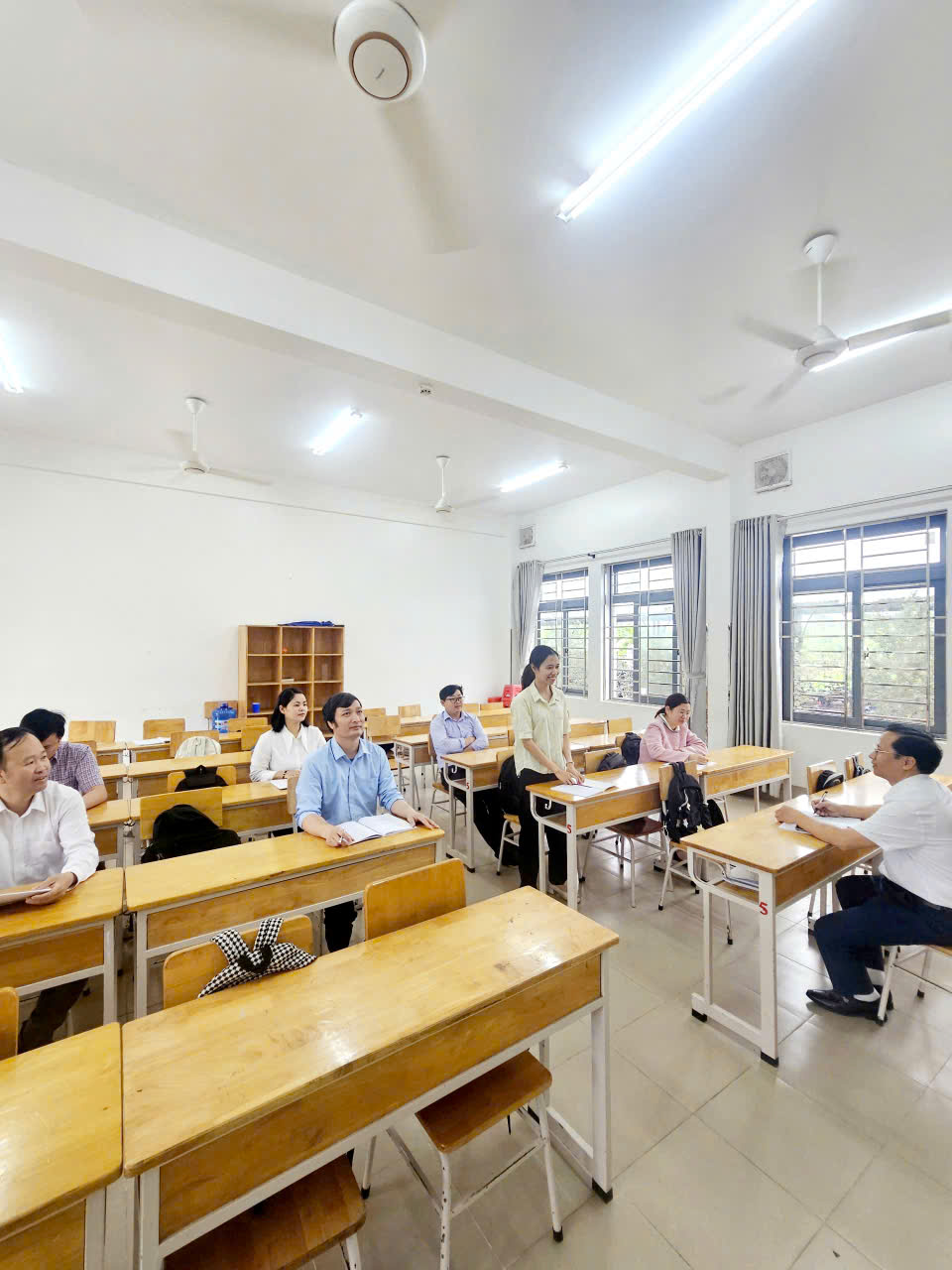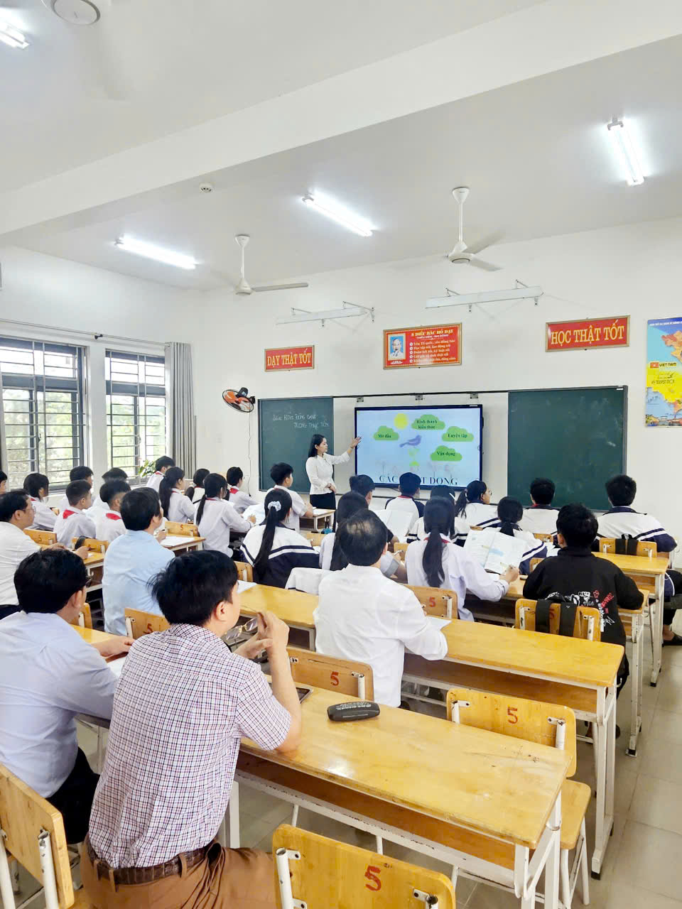 Thứ hai, về hình thức tổ chức: Không gian học tập không nên chỉ giới hạn trong bốn bức tường lớp học. Các đồng chí hãy mạnh dạn thiết kế các hoạt động học tập đa dạng, kết hợp giữa làm việc cá nhân và hoạt động nhóm. Đặc biệt, tôi khuyến khích các đồng chí đẩy mạnh ứng dụng công nghệ thông tin, công cụ trí tuệ nhân tạo và các phần mềm Toán học vào bài giảng để tăng tính trực quan, sinh động.