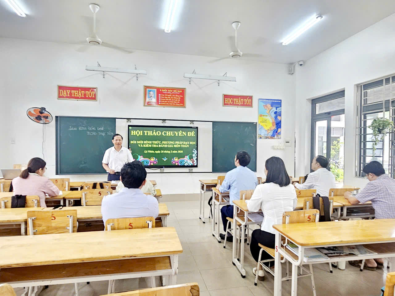 TRƯỜNG THCS VĂN LÝ TỔ CHỨC HỘI THẢO CHUYÊN ĐỀ VỀ ĐỔI MỚI HÌNH THỨC TỔ CHỨC, PHƯƠNG PHÁP DẠY HỌC VÀ KIỂM TRA ĐÁNH GIÁ MÔN TOÁN.